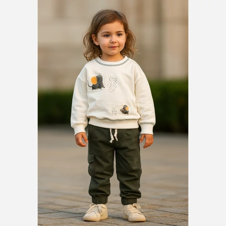 ست بلوز آستیندار با شلوار دمپا کش بچگانه برای دختر و پسر مناسب کوچولوهای 3 تا 8 سال با پارچه 100 پنبه ضد حساسیت فوق العاده لطیف در دو رنگ سفید و طوسی با شلوارهای تک رنگ 👈 لطفاً قبل از خرید به سایز و رنگ دلخواهتون موجودی بگیرید