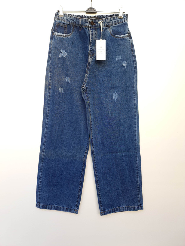 شلوار جین نیم بگ استایل زنانه - آبی (کمرکش)